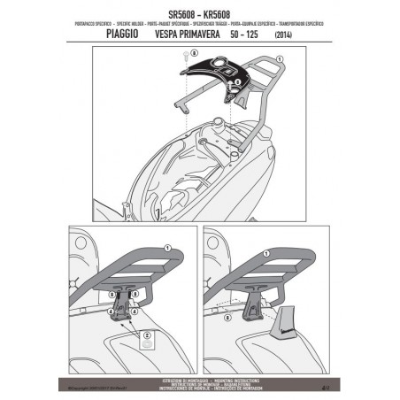 KAPPA STELAŻ KUFRA CENTRALNEGO PIAGGIO Vespa Primavera 50-125-150 (14-19), Vespa Sprint 50-125-150 (14-19) ( BEZ PŁYTY )KR5608 Kompatybilny z płytą MONOKEY K636 oraz z płytami zawartymi w kufrach MONOLOCK. |